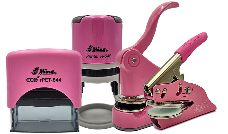 Create custom embossing seals with our THINK PINK Shiny EG Deluxe Embossing Seal. Easy customization and fast production time. Optional items available. Order your personalized embosser now.