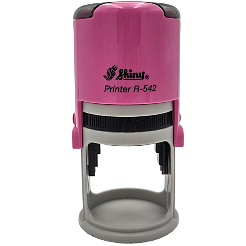 Shiny® Model R542 Selfinking stamp from our THINK PINK series with an impression size of 1-5/8in. Diameter (42mm). Perfect for most notary and professional seal stamps! Built in pad holds water based ink which works well on any "porous" surface. Select Customize to design and preview online.